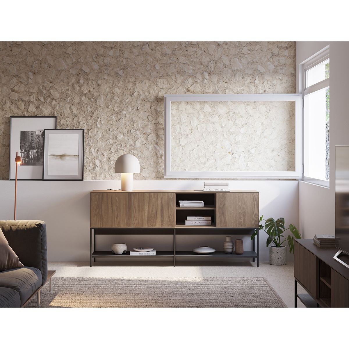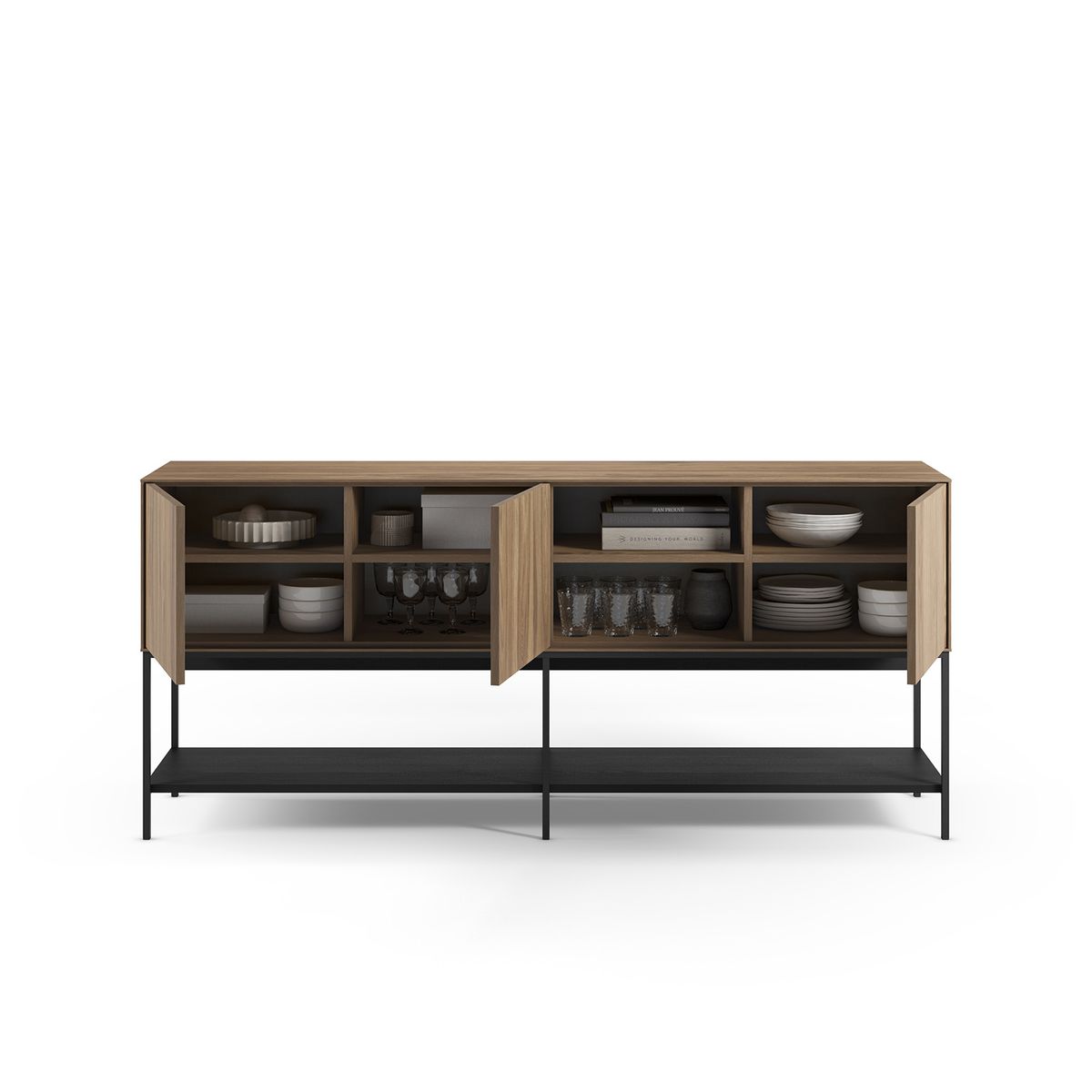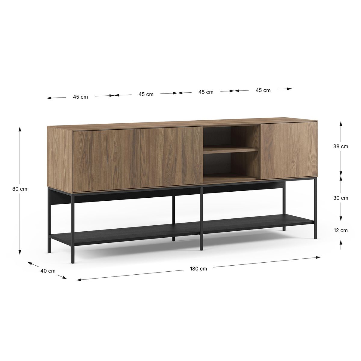 Buffet en bois et métal chêne et noir, 180 x 40 x 80 cm | Amira
