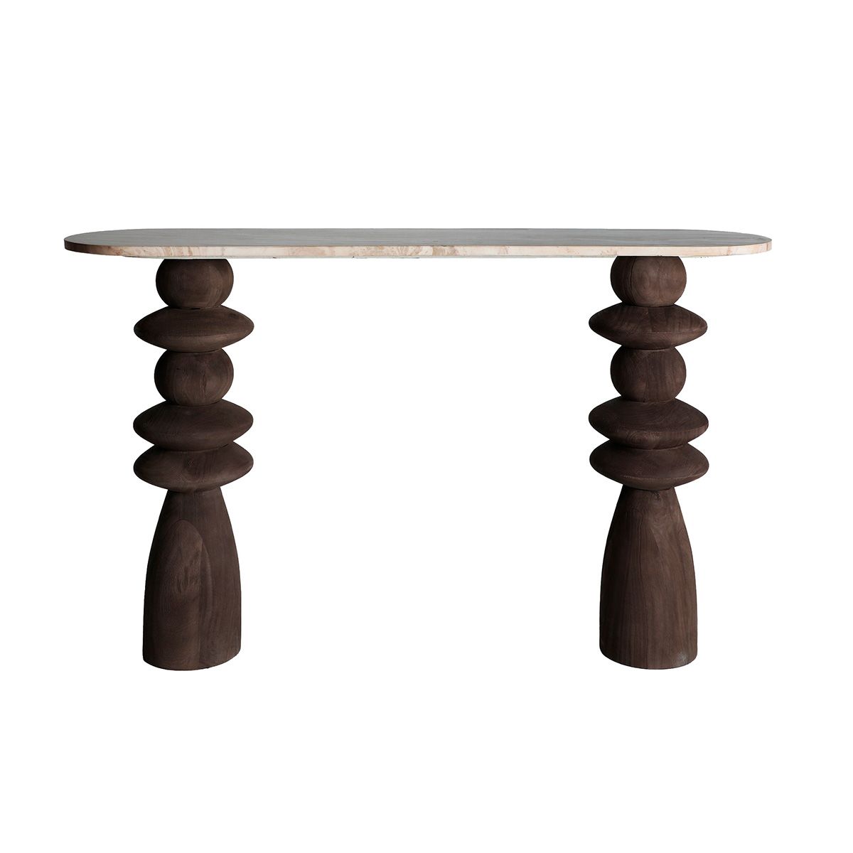 Consola de madera y mármol en marrón oscuro y beige veteado, 133 x 33 x 77 cm | Vrads