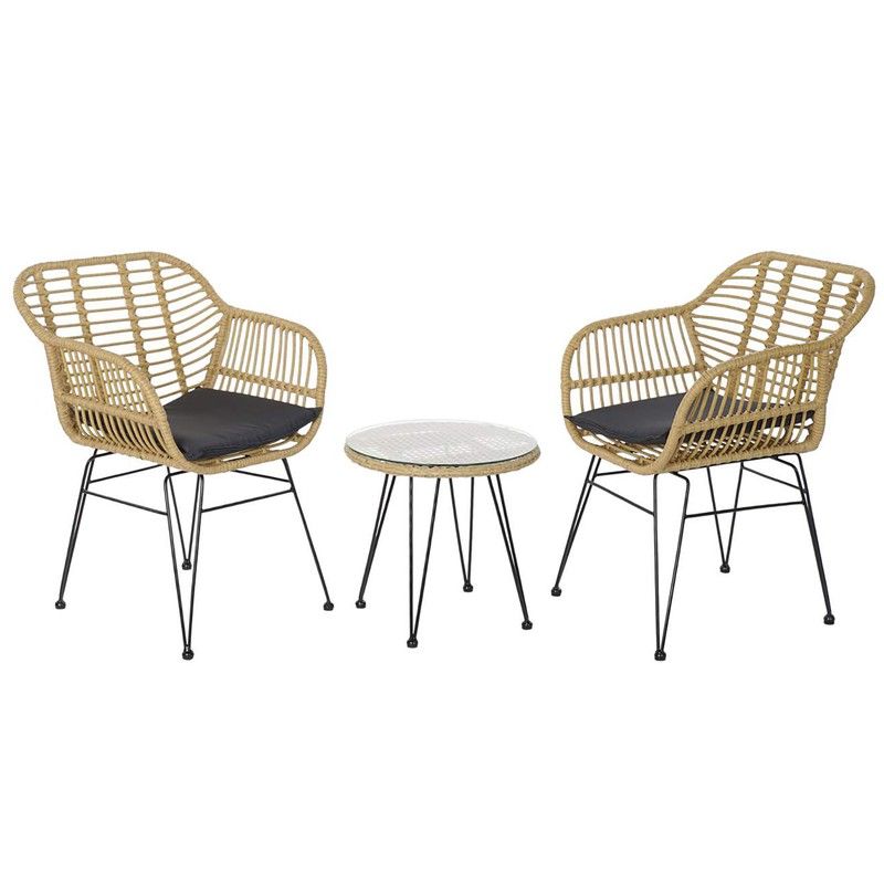 Ajouter une touche élégante à votre intérieur est possible grâce à cet ensemble de jardin en rotin 3 pièces. Il a une table basse en verre et deux fauteuils. Ces pièces présentent une structure en rotin synthétique et des pieds en métal noir.