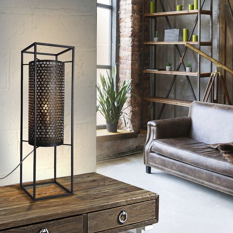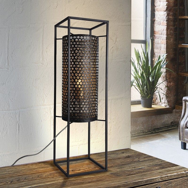 Petite lanterne à 1 lumière en métal estampé, finition extérieure noire, avec intérieur doré.