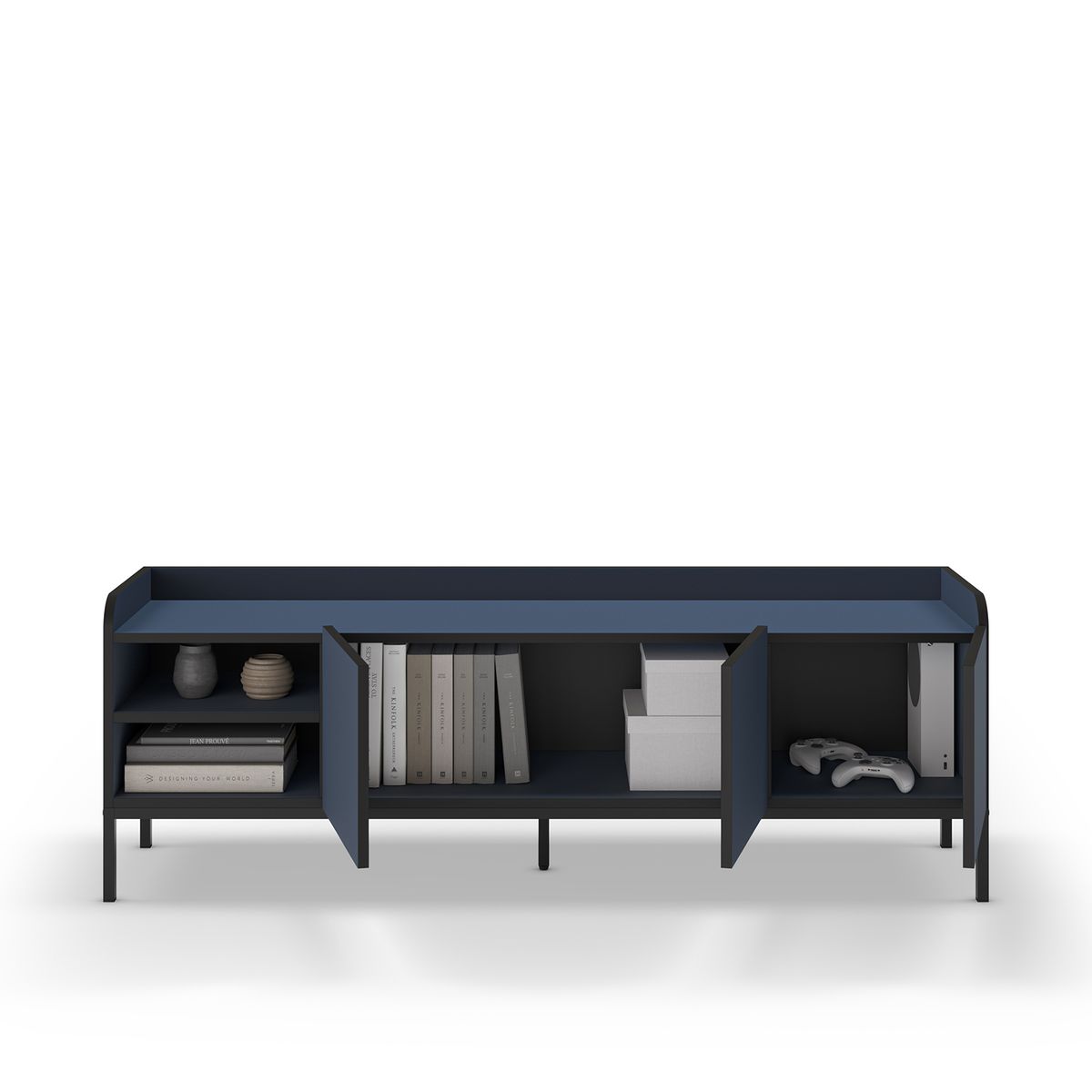 Meuble TV en bois et métal bleu, 160 x 42 x 55 cm | Adara