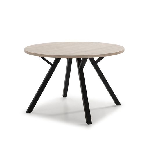 Table à manger ronde BENI en mélaminé et métal naturel/noir, Ø120x77 cm